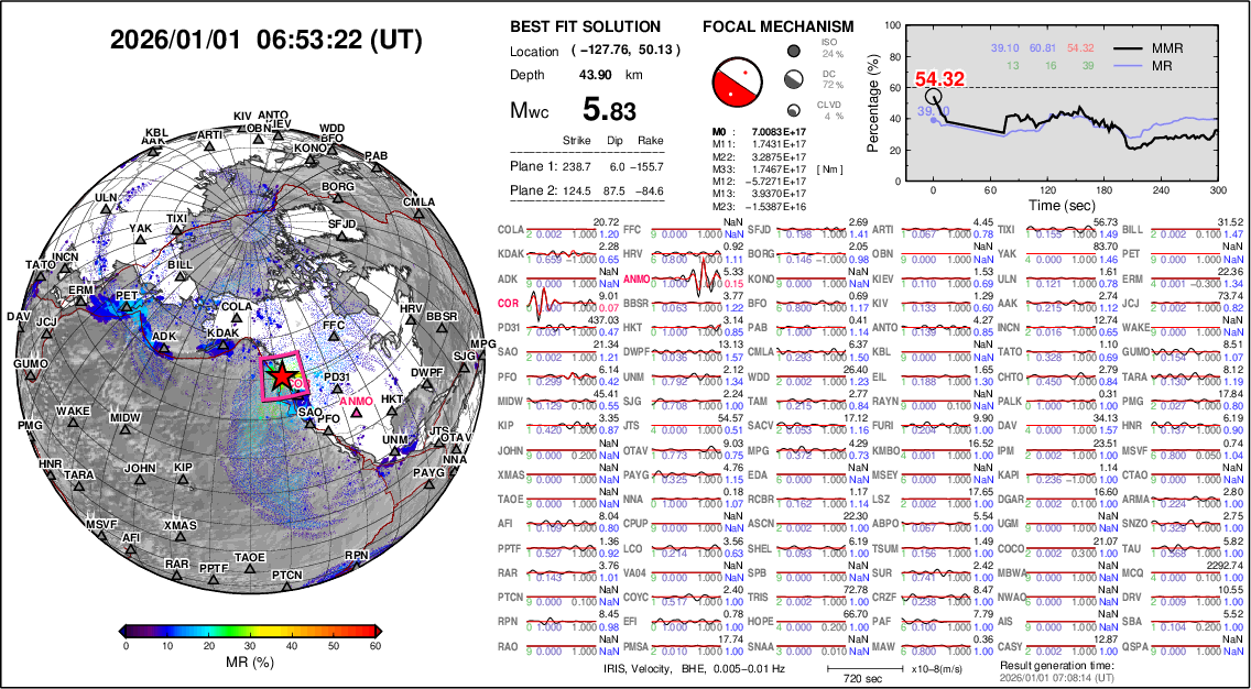 01/01 06:53:22, M 5.83 ZNE